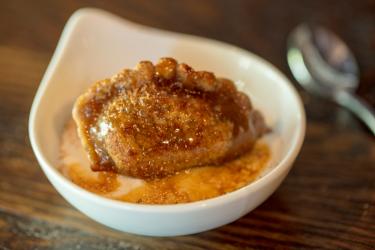 Apple Pie: This isn’t your granny’s apple pie! We’re certain Nana never rolled out cinnamon potsticker dough as the base for her pie. The only thing traditional is the scoop of accompanying vanilla ice cream, which Tori drenches in bourbon caramel and dusts with fresh nutmeg.