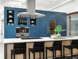 St. Louis just received a beautiful update on one of Clayton Road’s classic red brick buildings, originally built in the 1930s. Roth Living, a nationwide company with 35 U.S. showrooms, recently finished its new official Sub-Zero, Wolf and Cove showroom. The deconstruction of the tired structure refreshes the already beautiful and historic design; architects from Arch 11 decided to keep the new showroom true to St. Louis’s architectural roots by preserving the brick facade while updating the structure with modern zinc-clad steel. This nod to conserving traditional aesthetic can be found in the showrooms themselves through a forward-thinking approach to design mixed with the updated architecture. After passing the sleek front desk, customers travel into a world of modern kitchen inspiration with minimal design and well-used space. The striking appliances from Sub-Zero, Wolf and Cove mix naturally with the cabinetry of Wm Ohs, Downsview and Gegg Design. The showroom strives to make each customer’s experience both pain-free and interesting; product experts from Roth offer guided tours of the showroom to help streamline the shopping experience. Perhaps the most signature piece to this showroom are the digital concepts set in high-design vignettes. These 9x16-inch digital concepts are meant to encourage customers to explore new designs and possibilities and leave with a picture and product details to make their concepts a reality.