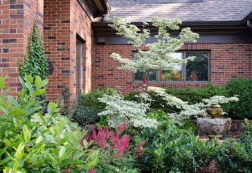 Meanwhile, with their last child ready for college, the wife took the Master Gardener course at the Missouri Botanical Garden, then joined a garden club and began taking every course she could find at local nurseries to increase her gardening knowledge. She focused on creating the beds surrounding the house and those that followed the path of the stream and ponds. “Once I decided on basic bed areas, I’d go to different nurseries to get ideas,” she explains. Favorite haunts became Greenscape Gardens in Ballwin, Sugar Creek Gardens in Kirkwood, Bowood Farms in St. Louis City and Schmittel’s Nursery in Maryland Heights.