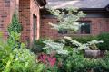 Conifers: Norway spruce, both the tall pyramidal (for privacy) and the smaller weeping varieties (Picea abies and pendula); weeping Blue Atlas cedar (Cedrus atlantica Glauca), which she uses as a focal point overhanging the stream; fluffy Japanese dwarf cedar (Cryptometria Pom Pom) and columnar Japanese plum yew (Cephalotaxus harringtonia).