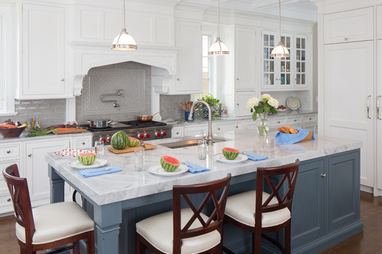"Kitchen design more than any other aspect of interior design is in a state of constant evolution. Driven by our need to personalize our environment, we are constantly searching for new ways to express ourselves in the kitchen. The option to change from painted finishes to a stained finish on the island gives clients the best of both worlds while visually separating the two spaces. That is what makes contrasting islands a classic." CJ. Knapp, Yours By Design.