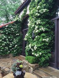 If you love hydrangeas and have a vertical surface one would grow beautifully on, the climbing hydrangea may be the perfect fit. The climbing hydrangea clings to strong surfaces or trees and slowly creeps into a beautiful wall of green. It is safe for brick as long as its mortar is in good shape to begin with. It only sticks to surfaces, therefore, it cannot create damage on a perfectly good wall. It may, however, leave a sticky residue on the wall should you ever want to remove it. A butterfly magnet, the climbing hydrangea provides year-round interest but is typically grown for its white lace-cap blooms of early summer. Its green leaves turn to a beautiful yellow color in the fall and its bark's beautiful peeled texture provides an interesting dimension in the winter. Mature plants can create a standout piece in the landscape, growing up to 40 feet tall and around 24 inches wide in ideal conditions. Well-maintained climbing hydrangea can live up to 70 years. It's important to note that climbing hydrangea may take years to bloom as perennial vines typically do.