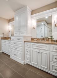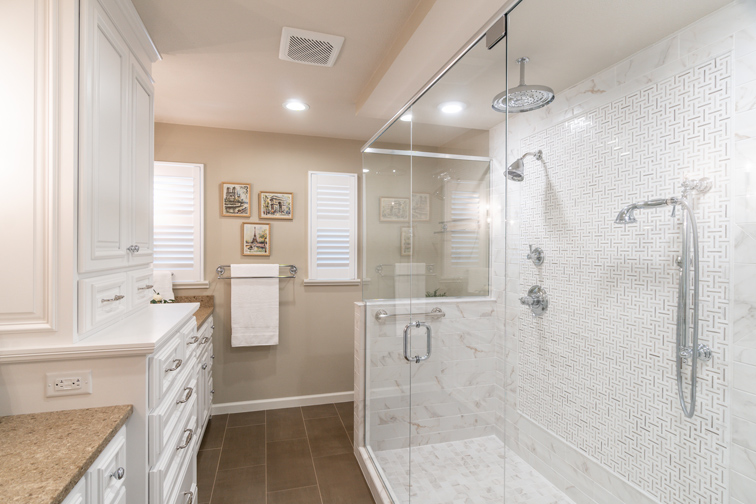 “The master bathroom is such a personal space and should be custom to the homeowners’ needs and lifestyle,” says Barbara. “I envisioned the space to be an elegant reflection of this couple, and I really wanted to create a look that felt timeless while addressing their needs. Everything is custom-made for them, and their new bathroom is traditional and classic — just like them,” she notes.