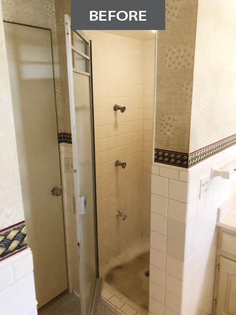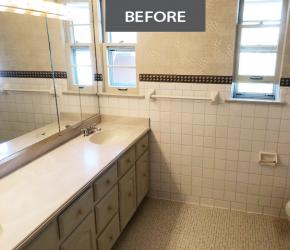 The new bathroom space needed to flow with effortless ease as well, and there wasn’t a quick fix to increase the square footage. So, in order to maximize the space they had to work with, the team decided to remove the concrete shower, the bathtub, the dark storage closet and everything else in the bathroom. The existing door going into the bathroom was not working, so Barbara relocated it and changed the style to a pocket door. She also designed an 11-foot custom cabinet that provided loads of storage and gave both homeowners their own vanity areas with great lighting. The large shower was custom-constructed to the homeowners’ preferences — Tom wanted a rain shower head and a hand-held, and Alice wanted a regular shower head as well as a large shower bench and storage niches. Barbara and Blake added all new lighting and ventilation and took advantage of the natural light by adding custom shutters for additional light control.