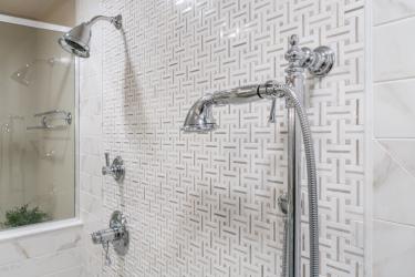 After meeting with the homeowners, Barbara decided she wanted to create a new energy for their dated master bathroom. Architecturally, she wanted to create a more sophisticated yet traditional space that functioned well. She also wanted to use classic finishes, beautiful tile and custom features that would befit the rest of the house.