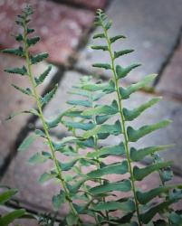 Polystichum acrostichoides, also known as “Christmas fern,” gets its name because its green foliage lasts all the way into the winter months, and it has a mitten-like leaf shape. This is not typical of most native fern species, so its foliage has been traditionally used as Christmas decor. It is a great addition to the landscape because it maintains winter interest as many other plants are dying back. Compared to most ferns, the Christmas fern can tolerate a bit drier soil conditions and more sunlight than most. It thrives, however, in moist soil and lower light conditions. In its natural environment, it grows on forested hillsides typically near rivers and streams. This Missouri native is a wonderful choice to help combat soil erosion. Its foliage is utilized by ground-dwelling birds for nesting and shelter. Christmas fern divides well at the rhizomes, so propagation of this plant is rather manageable. This is a very common fern in the wild and spans all the way from Nova Scotia to Mexico — showing its true versatility.