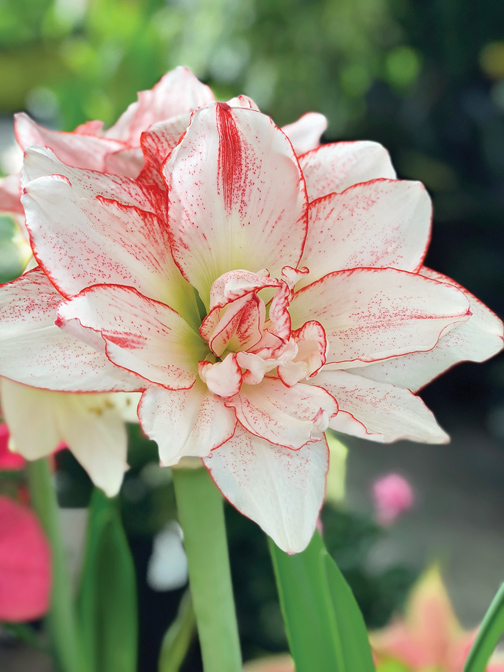 Our favorite forced bulb is the “Amadeus” Amaryllis. The large, double petals of their white blossoms are streaked with red accents. They make a beautiful holiday showpiece when forced indoors during the winter months. These long-lasting blooms make a festive gift that is easy for even a novice plant lover. Sarah Riley, Bowood Farms.