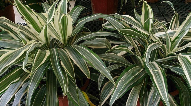 Warneck dracaena (Dracaena deremensis “Warneckii”) combats pollutants associated with varnishes and oils. The Warneckii grows inside easily, even without direct sunlight. This dracaena is known for its white stripes along the edges of its leaves. Easy to grow in lower light and does not require much water. David Sherwood, Sherwood’s Forest Nursery.