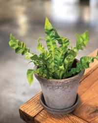 We love the Crispy Wave Fern because it is a hardy and low-maintenance indoor option. The fronds of this fern are rigid and wider than most, which according to NASA, makes it one of the best air-purifying plant options for the home. Keep this plant happy with indirect light and moist soil. Sarah Riley, Bowood Farms.