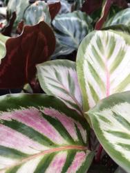 We love Calatheas because there are so many different varieties with interesting leaf patterns! They thrive with very low light and moderate watering, and they are totally pet and kid safe! Laura Caldie, Maypop Garden Shop.