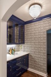 5. Functional and Fun, by Laura Casale Architect. We always design butlers pantry’s with a bright bold finish. It is usually where the bar is, so the space is a great place to use bold color, like the blue cabinetry in this space. We chose unique hardware and made the space a functional and fun place to store beautiful glasses and china.
