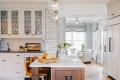 Why the judges love it: We love the contrast of the white cabinetry and tile with the dark hood and island cabinets. The designer did a wonderful job of combining the historic flair with a transitional look. We love the warmth of the kitchen.
