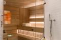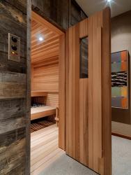 1. Warmth and Texture. By Birdseye Design. Custom built by Birdseye out of Richmond, Vermont, this lakeside residence features a full spa with sauna. The western red cedar interior of the sauna, as well as the reclaimed barnboard exterior finish, bring the warmth and texture of wood to the spa experience.