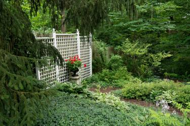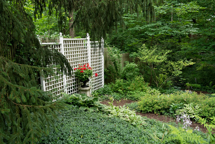 When it comes to extra care, she makes an exception for tall, evergreen Canadian hemlocks for the graceful presence they add to her landscape. “You have to fertilize them every year with an evergreen fertilizer. If we have a dry summer, you have to put a lot of effort into watering them, but there is nothing more beautiful than hemlocks with snow on them.”