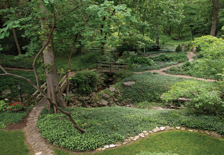 It was over 50 years ago when Judy Ward stepped through the front door of a 1950s bungalow on Friar Lane in southwest Kirkwood. She still vividly remembers walking past the kitchen at the front of the house, drawn immediately to a treetop vista of a one-acre, creek-crossed valley framed by a picture window at the back of the home. “I loved the view from the minute I saw it,” she recalls. While others might have been put off by the heavily wooded lot that sloped down from the street above to the origins of upper Sugar Creek below, Judy was entranced. The fact that the lot backed up to several other large, forested properties only increased her enchantment.