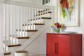 “We tried to create a relaxed space where we could come home, cook together, walk the neighborhood and unwind,” says Karen. “We love and appreciate original art—most of it we’ve collected over our lifetimes, and some was handed down from my parents. Having a white backdrop makes the colorful pieces come alive. We chose the color palette to complement and not distract from the art,” she adds.