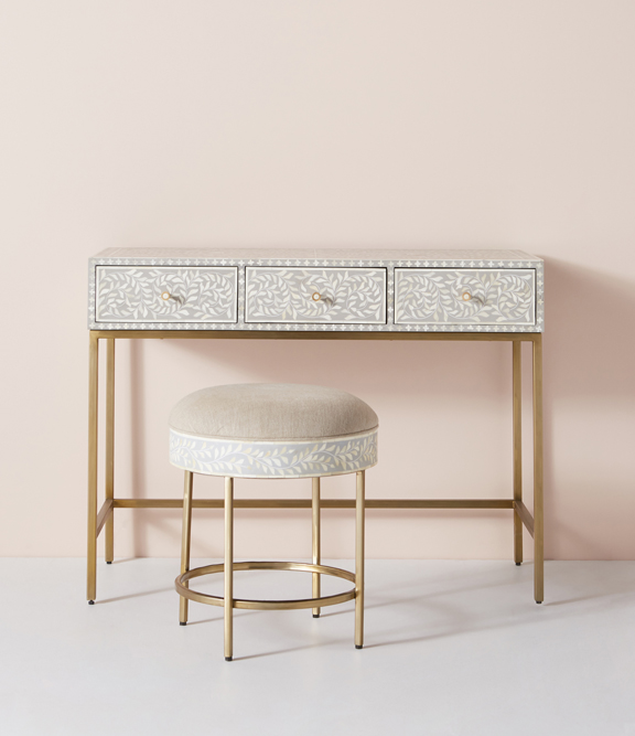 A place for everything and everything in its place, dressing tables are a practical organizer for all the small things you use when getting ready every day. Drawers allow for storage of cosmetics, jewelry and hair products. A mirror adds another level of functionality. A desk can even be used in place of a traditional vanity.