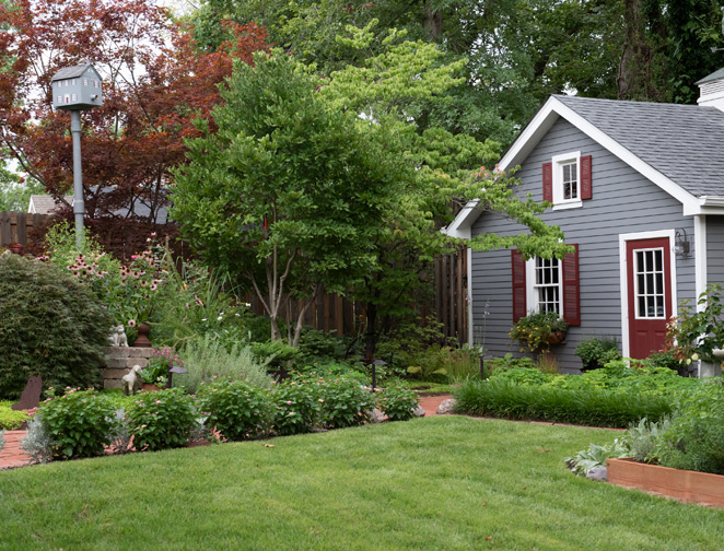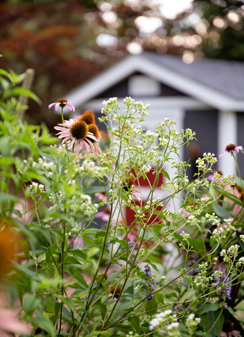 “We look at (our garden) as a country casual garden,” Neil says. “We didn’t have a designer come in and tell us what to do. We worked with what we had. Everything evolved out of necessity, even the shed. We added it because we had run out of room in the garage and a previous smaller shed. Now it’s become a key to tying everything together.”