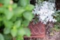 Throughout their landscape other antiques, some purchased by the couple and others inherited from Barb’s parents, add warmth and decorative interest to their plantings. Just this past summer, Barb and Neil added another joint project to their garden; a charming shed they designed at Tuff Shed in Fenton to coordinate with the house and the garage. Carefully snuggled in between an existing Japanese maple and a Japanese climbing hydrangea, it now forms a backdrop for Barb’s boxed, herb-specific bed.