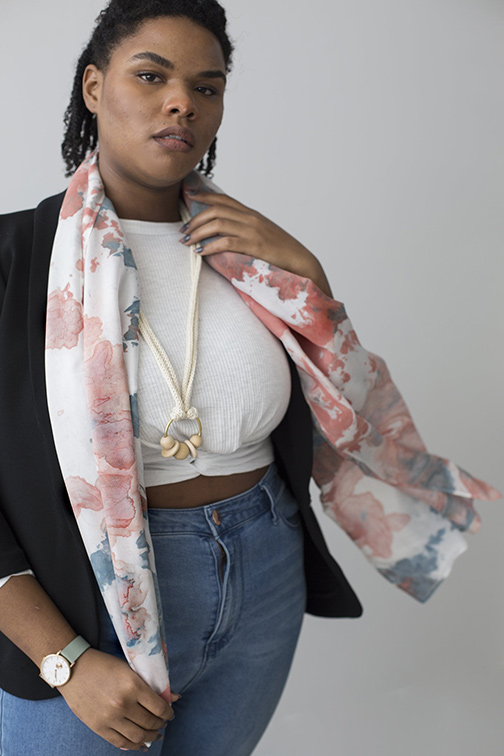Made from 100 percent silk, Lydia’s scarves are hand-dyed using tints extracted responsiby from tree bark, roots, leaves and sometimes onion skins—a technique she likens to a science experiment. “I never excelled in science before,” she laughs, “but at the School of the Art Institute of Chicago, I took chemistry to understand the process of dying materials.”