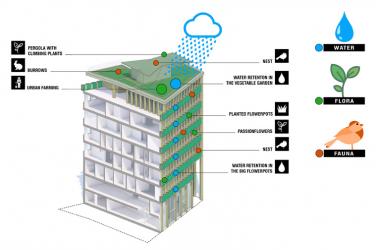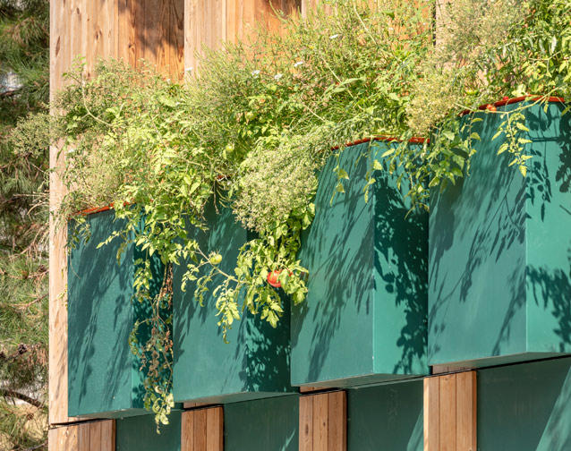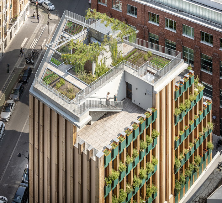 Edison Lite Apartment Building, Paris, France: The Edison Lite Apartment Building in Paris, France, was built with three main principles in mind: made-to-measure housing units, 20% extra surface area available for residents to share and to welcome residents into an existing landscape. Made-to-measure housing units allow future residents to participate in setting the original design of their home. The extra surface area utilizes space for groups to enjoy that would otherwise not be accessible to residents. Lastly, the building created a roof garden with 290 planters and a 150 meters-squared allotment. The gardening plot creates what the architects call a “permacultural” way of life, allowing residents to produce a portion of their own food, enjoy the anticipation of watching it grow and encouraging them to participate in a collective effort to provide for themselves and their community. This eco-friendly measure was put in place to help spearhead a reduction in supply chains and move toward home-grown sustainability. While architecturally beautiful, the building itself is made with simple materials of concrete, timber and metal.