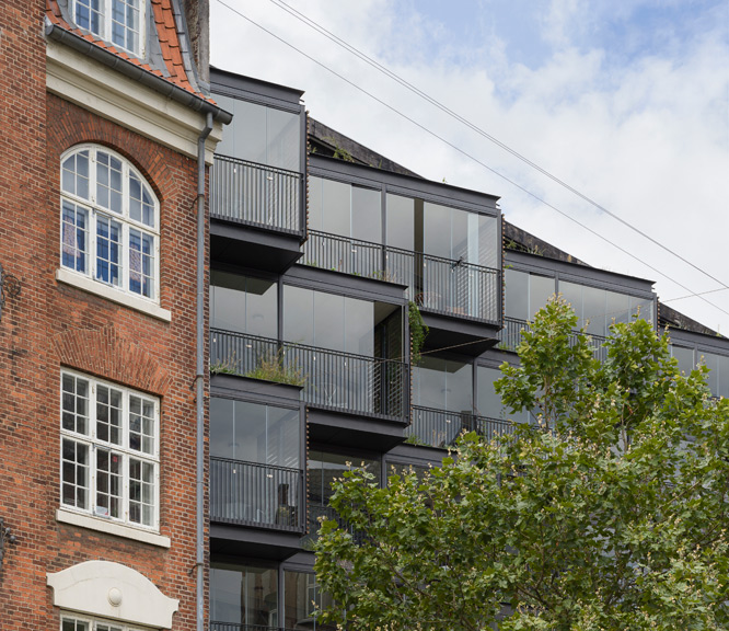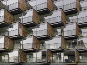 Ørsted Gardens Apartments, Frederiksberg, Denmark: Originally erected in the 1960s, the building that eventually became Ørstead Gardens Apartments was considered one of the ugliest buildings in the city of Frederiksberg, Denmark. Built during a time of architectural pragmatism, the structure was overly sleek and unwelcoming; however, renovation began to prevent water from damaging the concrete balconies rather than updating the overall look. Once the renovation began, the owners and architects behind the building’s new design opted to remodel the structure to better fit the aesthetic of the heavily trafficked street. Instead of patching the open balconies with glass panes, the architects at Tegnestuen LOKAL aimed to create a social gathering space with a series of triangular glass bays; these new spaces now serve as semi-private decks for residents. The semi-private decks allow for residents to have personal space while encouraging random meetings between neighbors. To contribute positively to the street’s overall experience, the facade’s new geometric additions create a sense of rhythm for passersby and residents alike to enjoy.