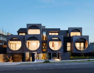 Cirqua Apartments, Ivanhoe East, Australia: Built by BKK Architects as a reflection of the local suburban culture of Melbourne, Australia, the Cirqua Apartments bring an architectural flare to the lives of single-home dwellers. The surrounding homes are primarily built in the art deco and federation style, so Cirqua used common materials of the era, such as weathered brick, standing seam metal and wooden partitions. To create a rhythm in the suburban streetscape, large brick boxes project out of the building at various depths, helping create a substantial front yard. Some portions of the complex are single-story while others are double; the steeply sloping building site keeps the appearance cohesive from the street as it hides the bulk of the building out of sight. Perhaps one of the most striking features of these apartments is their porthole windows. These windows serve to flood each living space with light while also providing a formal design language to follow throughout the rest of each apartment in details like light fittings, door handles and tiles. Designed with a strong focus on accessibility and passive environmental control, the Cirqua Apartments allow residents to thrive inside the comfort of a family home.