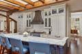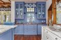 Shades of blue abound in the kitchen, which was the only room in the home that had to be gutted. Originally dark with burgundy cabinetry and green countertops, the room needed to be lightened. The homeowner fell in love with a La Cornue range in the perfect shade of blue she saw at Williams-Sonoma in St. Louis. The company was able to send her a color chip, which Gigi sent to the kitchen designer of the former St. Louis firm Baygents. The designer matched the island base and built-in butler’s cabinetry by Woodmode to the chip.