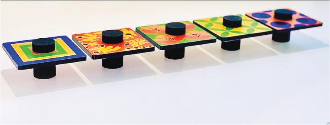 Zigman is launching her new website, sarabethdesigns.com, soon and with it a line of functional (and non-breakable) home décor and tabletop products, including candleholders, coat hooks, bookends, dinnerware, table linens and 3-by-3-inch cubes that can be displayed on a table or bookshelf—anywhere they can be picked up and touched. She sells this functional art as well as public art installations.