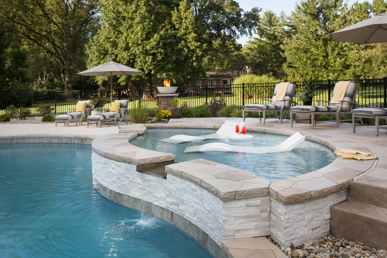 The notion of making the home their own extended to the outdoors as well. Three years ago, Mills and Faller embarked on a significant project with plans for a new pool, hot tub and expanded entertaining space. Realizing they could use professional help to integrate the new outdoor spaces with the forthcoming interior remodel, Faller connected with Candice Wideman, owner of Youtopia Designs. Mills says the couple had worked with a few designers on small projects over the years, but the results were less than satisfactory. “We were too young and naïve to say to a professional, ‘no, this doesn’t really work for us.’ We had to grow up a little and get more experience in finding someone we felt comfortable with,” says Faller. That “someone” turned out to be Wideman.