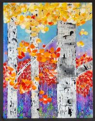 Aach finds inspiration in nature and the emotions that nature elicits in her. She never sketches her ideas before she begins painting. She knows how she wants the finished piece to look, makes her first marks and then the painting “develops its own life and takes off.”