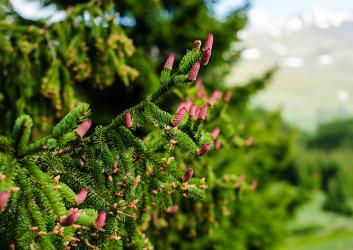 As if a conifer could bloom! The vibrant red that adorns the tips of Picea abies “Rubra Spicata” is almost always mistaken for flowers when it appears briefly each spring, but it's actually just the new growth tips of this upright Norway Spruce. It grows relatively slowly to about 12 to 8 feet in 10 years, but eventually becomes a large tree with an open habit. It needs full sun, well-drained soil and a prominent site where it can be enjoyed for its lovely, symmetrical form and inviting dark green foliage. Kathie Hoyer, Bowood Farms.