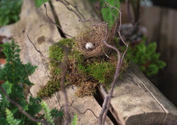 In a clump of fern, a bird’s nest containing a pale blue egg is nestled on a bed of moss draped across an ancient silvery log. It is a detail that could have been plucked from a Dutch Master’s still life.