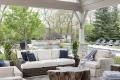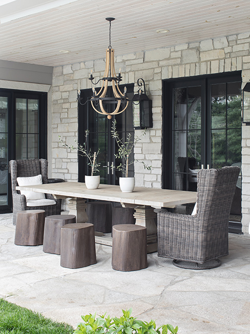 “My advice to anyone building or renovating would be to invest in quality products like flooring, windows, doors, cabinets and fireplaces,” concludes the homeowner. “These are the things you’ll enjoy the most and are hard to switch out after you’re finished. Now that this house is complete, one of my favorite things to do is gaze out the French doors in the evening as the sun sets over the pool. Just beautiful.”