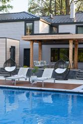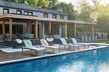 Homeowners Erin and Ross Toohey had purchased their home for its location, not its style, and this included the back yard. “Pretty much everything had been redone,” Erin says. “We had taken the whole house and back yard down to studs over the last six years. The pool was already dug, but we refinished that, putting in new tile and reconfiguring the hardscape like the forever deck and concrete.” Finally, once all that was accomplished, something else was needed that many people might not give a second thought about—they needed some backyard furniture.