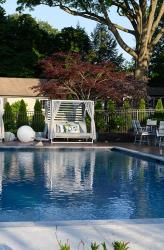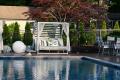 The backyard furniture needed to feel modern too. The pool beds or daybeds were a custom-made design, says Arash. “One of our vendors made the daybeds for the family, who got to select their preferred color, style, shape and size.” Plus, the custom features make the beds invulnerable to the sun and weather changes. “The actual frames of the beds are made from cast aluminum that does not rust,” says Arash. “The materials in the cushions doesn’t trap water inside, while the outside is made from a solution of dyed acrylic, the same material restaurant awnings are made from. They’re as durable as it gets.”