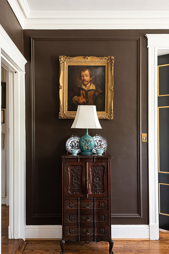 “As Lucy told me at the time the owners first purchased the home, ‘it was a hot mess,’” laughs Catherine. “With her design skills, it is now stunningly beautiful yet retains the charm of a family home for three young children. Lucy has incorporated many of the owners’ cherished heirlooms along with her own special finds. Every time I visit, I am mesmerized that each room—every nook and cranny in this large three-story home—has special visual treats. I can literally find something fascinating in every corner and on every wall. She truly has a knack for finishing every space, especially in this impressive historic home.”