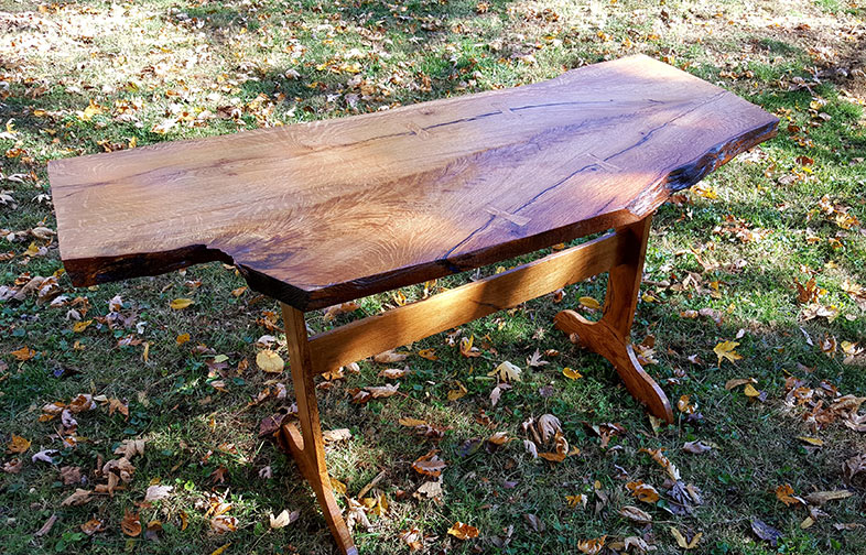 However, Musial was involved in a car accident in 2016 resulting in a traumatic brain injury. After the accident, he spent time relearning many of his woodworking skills; while doing so, he found one of his new inspirations in the woodworking world, George Nakoshima. Nakoshima (a Japanese American who spent time in an internment camp during World War II) was known for making large wood tables with smooth tops with “live” natural edges, a style Musial quickly adapted for his own work.