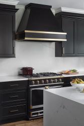 The homeowners came to their first meeting with kitchen designer Chris Paul of Alspaugh Kitchen & Bath and interior designer Lauren Sweet-Schuler armed with a design twist: they wanted black cabinets and a black La Cornue range in the new kitchen. What could be a daunting undertaking for some, Paul and Sweet-Schuler accepted the bold color palette with ease. “The new addition had expansive windows that allowed in ample natural light to balance the dark cabinetry,” Paul explains, noting that proper lighting and clean lines can help support the decision to use black and white. Paul made sure to include under-cabinet lighting and recessed can lights to illuminate the space during evening hours.