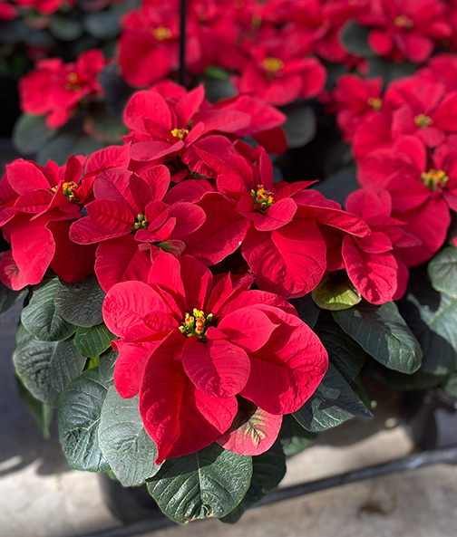In the Garden’s greenhouses where the poinsettias are grown, the horticulture team has been preparing for the Holiday Floral Show for months, using special coverings to shroud the poinsettias in darkness for hours at a time. This mimics the conditions in the wild that cause a poinsettia to produce its red “flowers,” which are actually specialized leaves called bracts.