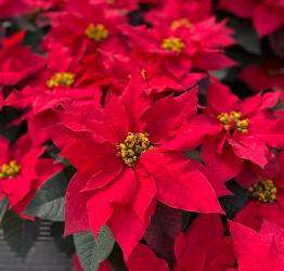 Among the poinsettias featured in this year’s show are two new introductions: The “Christmas Mouse Red” and “Ranch Red” varieties. The “Christmas Mouse Red” poinsettia’s bracts are uniquely rounded, giving them the appearance of mouse ears, and the “Ranch Red” poinsettia stands out with unusually prominent clusters of yellow cyathia.