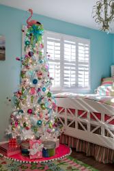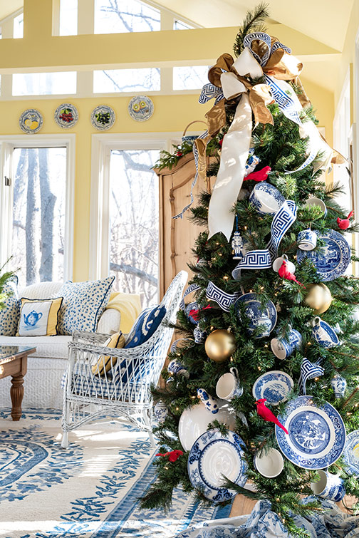 She attached plate hooks to the plates, then used wire to put them on the tree and interspersed the real dishes with ornaments. After the holidays, she put the dishes back in the cabinet. “Anybody can decorate a tree that makes them happy or expresses their interests,” she says. “Just tell me what you’re interested in; you could do a twist on that.”