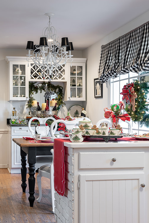 However, her favorite tree is the family tree in the family room because it has all the ornaments that hold heartfelt memories—ornaments made by her children or given to her as keepsakes. “It’s sentimental,” she says. “There’s no decorating pressure.”
