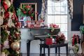 Built in the 1970s, Liz has lived in her house for 26 years. Her kids are in their 30s and now live out of the area, and she decorates a tree for each of them. For her son, she decorated a tree in a music theme and sports. She bought multiple 45 RPM records and used ribbon to hang them on the tree. She also adorned the tree with rolled up sheet music, plus music and Cardinals baseball ornaments.