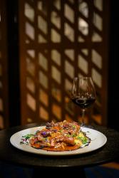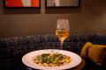 Chef de Cuisine Brennan will start with a warm mushroom salad, using locally sourced mushrooms sauteed with mustard greens, dressed with champagne dijon vinaigrette, garnished with chevre, pomegranate seeds and calabrian oil. Galette follows, consisting of brown butter roasted delicata squash, confit garlic and caramelized onion with roquefort bechamel. Lastly comes the coq au vin, a braised chicken quarter with mushrooms, lardons and tomatoes over brown butter smashed potatoes.