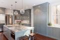 Prior remodels to this 1892 home were reflective of their time but had no regard for the historic architecture of the home. Gegg Design & Cabinetry worked with the homeowners, especially Alexis Mead who acted as interior designer, to redesign the kitchen honoring their vision for a simplistic design with warm colors that would also be functional for the serious cook. The homeowner shared several British-inspired kitchens as a guide for the designer to work from. The space was taken down to the studs. Replacing a structural header that separated the kitchen and breakfast room combined the spaces into one large room, which allowed for a longer island and more functional kitchen. The floors were brought back to what would have been original floors matching the others throughout the home. The designer chose classic flush inset cabinetry for the high-impact, visually significant areas. Glass-front cabinets with contrasting interiors are the only wall cabinets in the room. The wall cabinets are set atop the base cabinet area that features a bar sink, water dispenser, ice machine and wine cooler. Tall inset cabinets serve as the pantry with one door being faux to hide a necessary structural element that could not be relocated. The range was ordered in a custom color, urban bronze, to complement the color selections. The hood design is simple and finished in the wall color. A brass pan rail holds the high-use cooking items and is set in a niche highlighted by the original window. Faucets and hardware were aged brass as a nod to the home’s age. This kitchen blends with the home’s past while including modern features for today’s lifestyle.