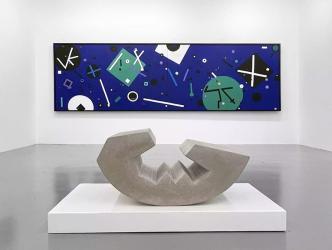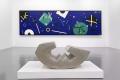 Part artist and part philosopher, he points out that the power of his work lies in its ability to be interpreted in many ways. “They see what they see,” he says of his audiences. In other words, viewers of his art can find myriads of meaning in his smooth sculptures or busy paintings radiating bright colors. In his paintings, storms of shapes fly across the flat surface, but seem to have their own weight and personality, or hectic lines offer rough grid systems intersecting the shapes at times. “The brain projects a meaning,” he says. “My paintings are like Zen or meditation for the viewer,” he reflects. “Creating images as portals into the mind is my goal as an artist.”