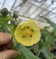 Abutilon pitcairnense just came into bloom for the first time at the Garden in the Oertli Family Hardy Plant Nursery. It is being moved to the Linnean House for public viewing.