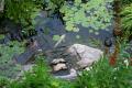 Chris worked with Lori to add native aquatic plants such as blue flag iris, hardy canna, purple flowering pickerel weed and lizard’s tail with striking green and white foliage to the margins of the ponds. Those plants supplement the water lilies that accent the surface of the fish pond.