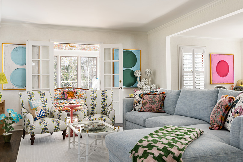 After creating six homes together, it’s safe to say that interior designer Maggie Jewell of MKS Designs and her long-time client are perfectly in sync with each other’s styles. Their most recent endeavor, a jewel box of a home nestled in the charming St. Louis neighborhood of Glendale, looks like a colorful dream come to life. The homeowner, a St. Louis resident of 27 years, had recently relocated to Florida to enjoy life on the coast. But when her daughter married, settled down in Glendale and was awaiting her first child, this grandmother-to-be had a change of heart. She knew that once her granddaughter was born, she would want a house nearby to watch her grow and, as she puts it, “do all the fun GiGi life with her.” So, the first thing she did was call on her faithful designer and friend, Maggie Jewell.